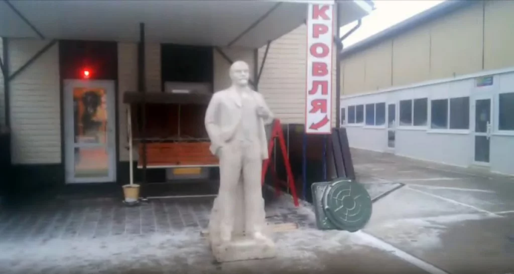 Через две недели на территории Кирова в Калужской области откроется очередной торговый комплекс. Его название созвучно с фамилией вождя мирового пролетариата. Поэтому у входа установили мраморную скульптуру товарища Ленина.