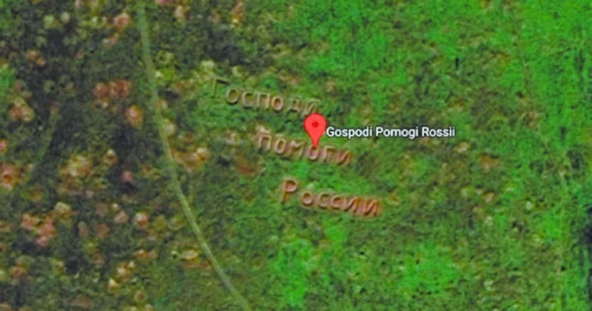 Надпись «Господи, помоги России», расположенная недалеко от села Рождествено в московском районе Митино. Происхождение доподлинно неизвестно.