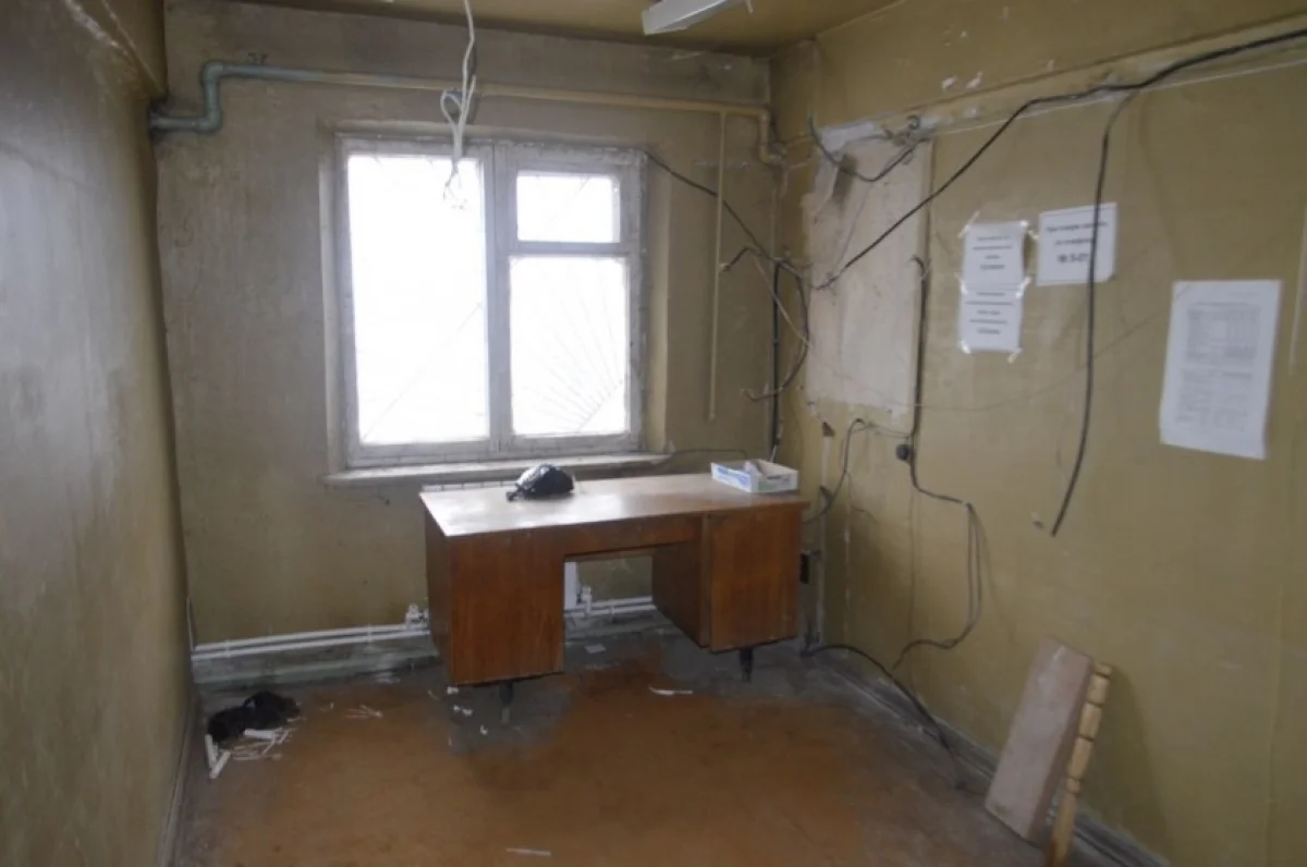 Почтовое отделение не отапливается и выглядит, будто после бомбёжки: со стен отваливаются куски штукатурки вместе с краской, унитаз чёрный, раковина ржавая. А на двери висит объявление: «Приносим извинения за доставленные неудобства. Ваша Почта России».