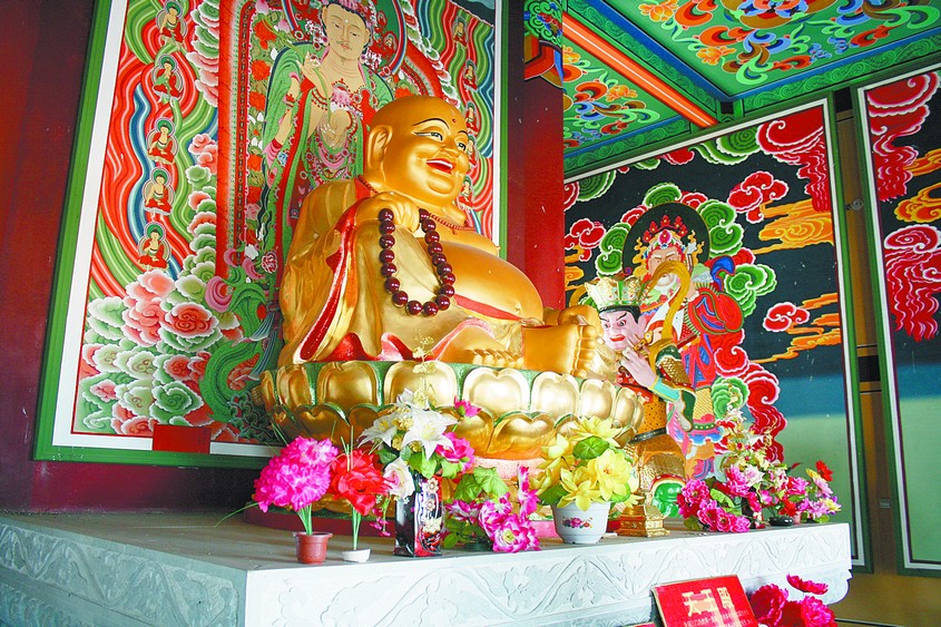 Крыши монастыря чёрные — значит, он корейский. На территории много статуй Будды, и у каждой — свой храм. Встречает всех Будда весёлый. Он толстый, улыбается. Сбоку — Стражники, которые охраняют Будду от всевозможных пороков… Есть Будда умный, он отличался тем, что у него огромные уши, Будда медицины — его надо просить о здоровье. А возле его храма стоит фигура калеки, «собравшего» все болезни, которые только можно представить, — он горбатый, беззубый, с палочкой… Местные на его болячки наклеивают пластыри — «лечат». И весь он обклеен пластырями.