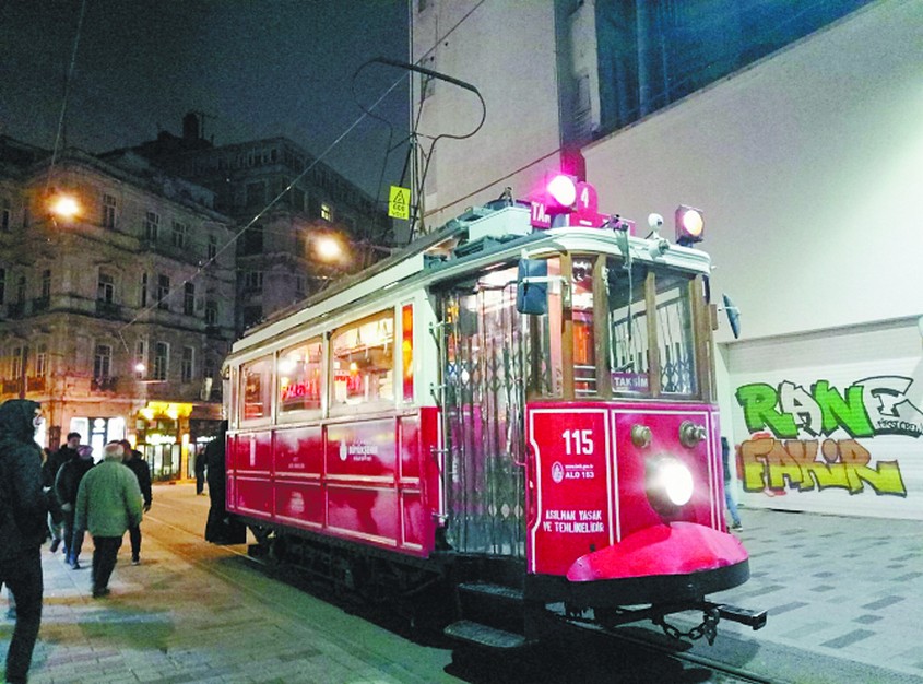 В один из первых дней погуляли по улице Истикляль. Это пешеходная улица, напоминающая столичный Арбат. На ней расположено много кафе, ресторанов, выступают уличные музыканты. По улице Истикляль ходит красный винтажный трамвай, его изображение можно часто увидеть на открытках. Мы тоже на нём прокатились.