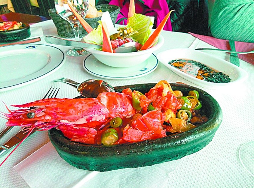 Креветки с овощами, которые подают в одном из кафе с видом на Босфор.