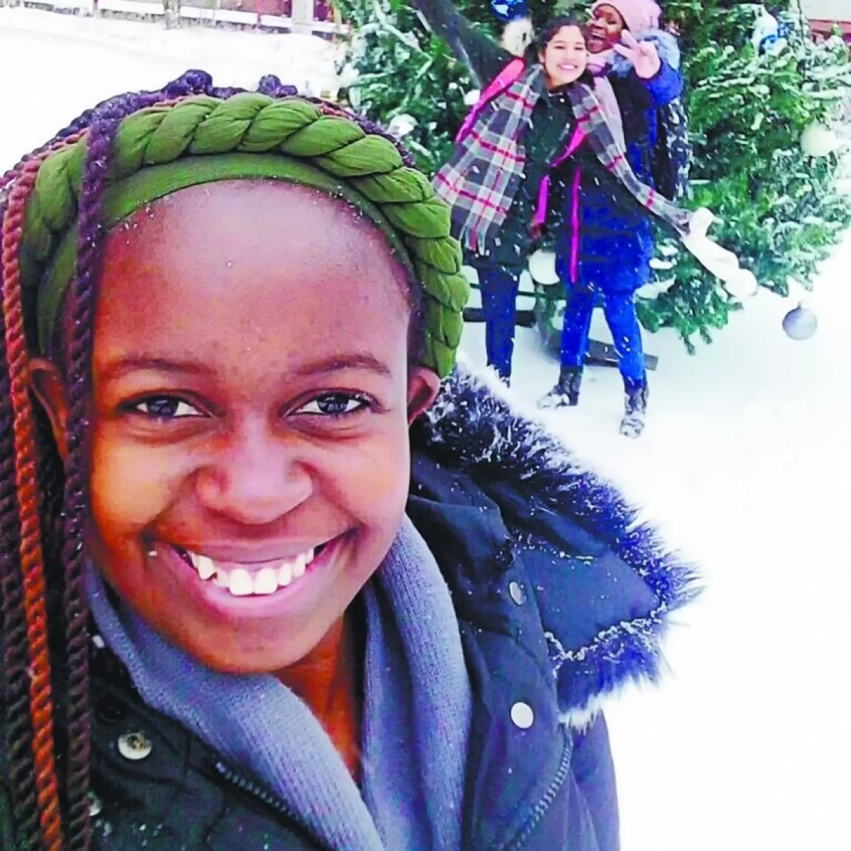 — В Калуге я впервые увидела снег. Мы с Наташей сразу выбежали фотографироваться. Но всё-таки, когда снегопад, мне больше нравится сидеть дома и смотреть на него из окна. Зима здесь очень–очень холодная, приходится носить много тёплой одежды. У меня парик, он тоже согревает. В Замбии сейчас в моде африканские косички. Мы их заплетаем в салонах, у нас это недорого, или носим парики и меняем их. Я купила самые лёгкие косички, которые просто привязываются к волосам.