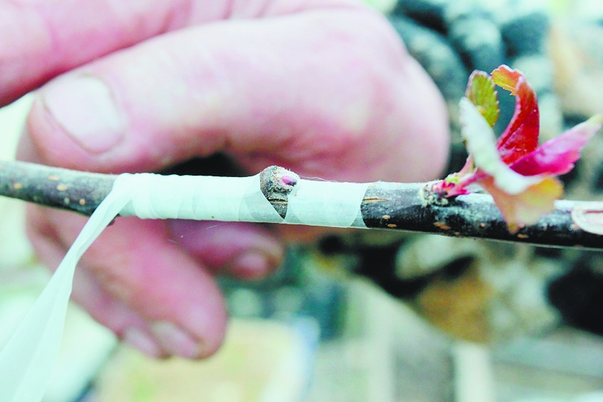 — Это колоновидый подвой, я на нём эксперименты ставлю: прививаю разные сорта, использую всевозможные способы. Вот почкой привил, — показывает Максим Бубич одну из веток. — Когда осенью в Беларусь ездил, смог выцарапать сорт «паланез». Это очень хороший сорт. По срокам потребления и хранения им одним можно 4 дерева заменить. Вот, скажем, любимый многими «белый налив» не хранится, яблоки лежат недолго. А «паланез» и созревает на 5–7 дней раньше, и хранится с августа по ноябрь. Это сорт иммунный, высокозимостойкий. Я привёз всего два черенка, старался чуть ли не каждую почку сохранить.