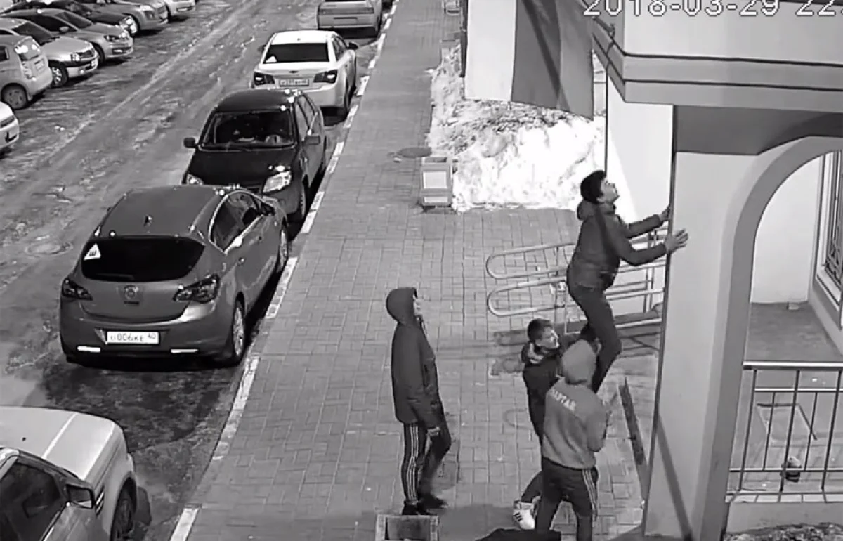 Его сделала калужанка, которая живёт в доме, с которого сорвали флаг. Женщина вышла проверить, как подростки возвращают его на место и начала снимать видео. Однако это не понравилось одному из молодых людей, и он обматерил женщину и в какой-то момент выскочил из машины с палкой.