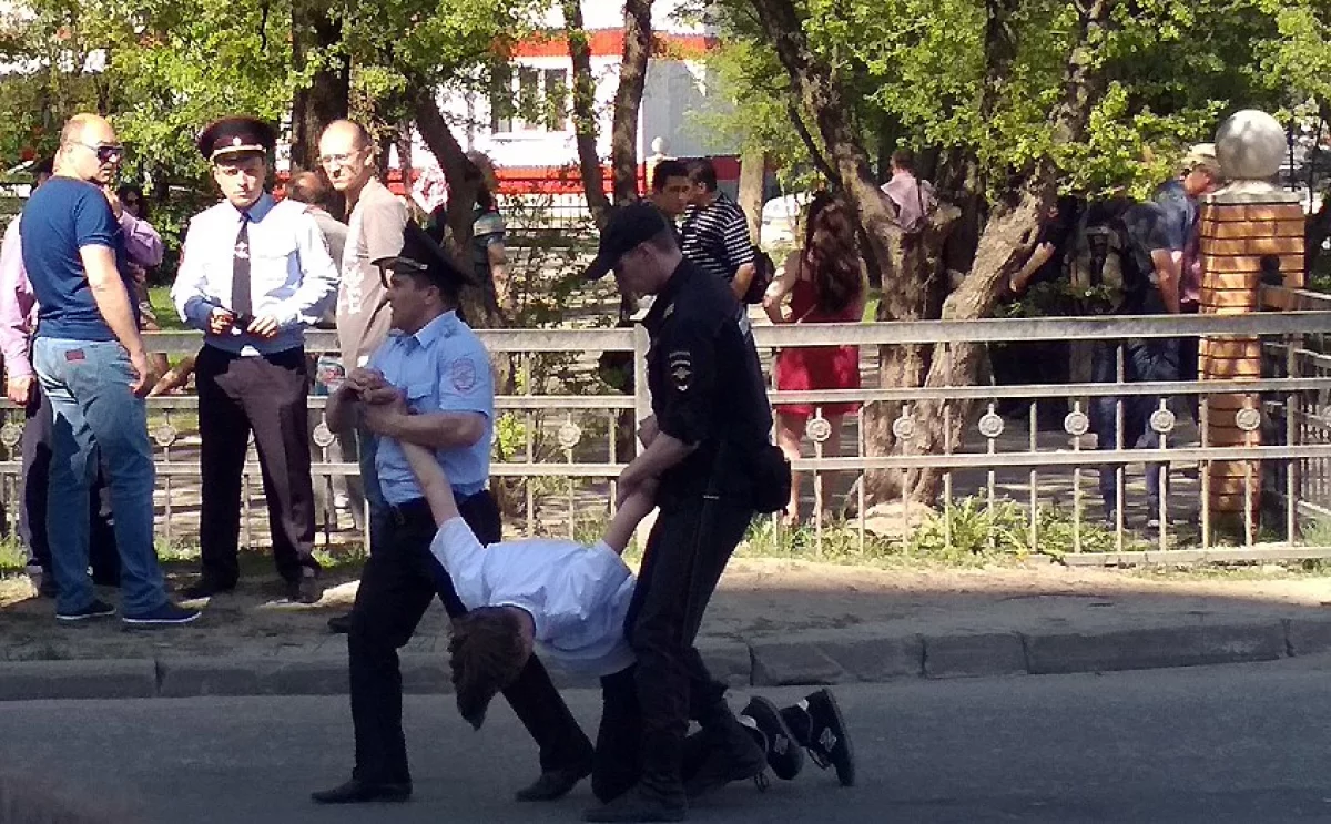 Участники митинга ничего не выкрикивали, просто держали в руках флаги России. Подобные несанкционированные акции под лозунгом «Он нам не царь» в канун инаугурации Владимира Путина прошли по всей стране.