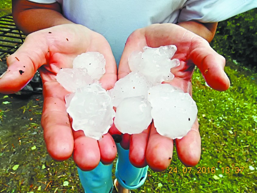 Огромные градины, выпавшие на Катуни, — в руках они уже подтаяли.
