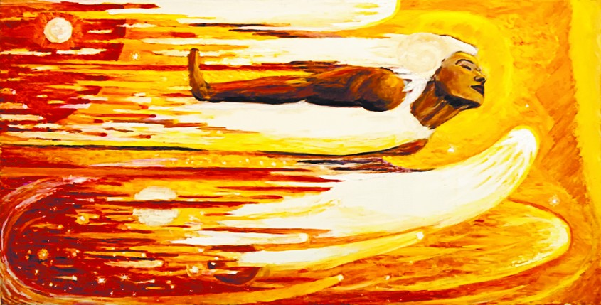 «Денница. Падение Люцифера». Если смотреть на картину слева — летит ангел, если справа — у персонажа уже проступают рога…