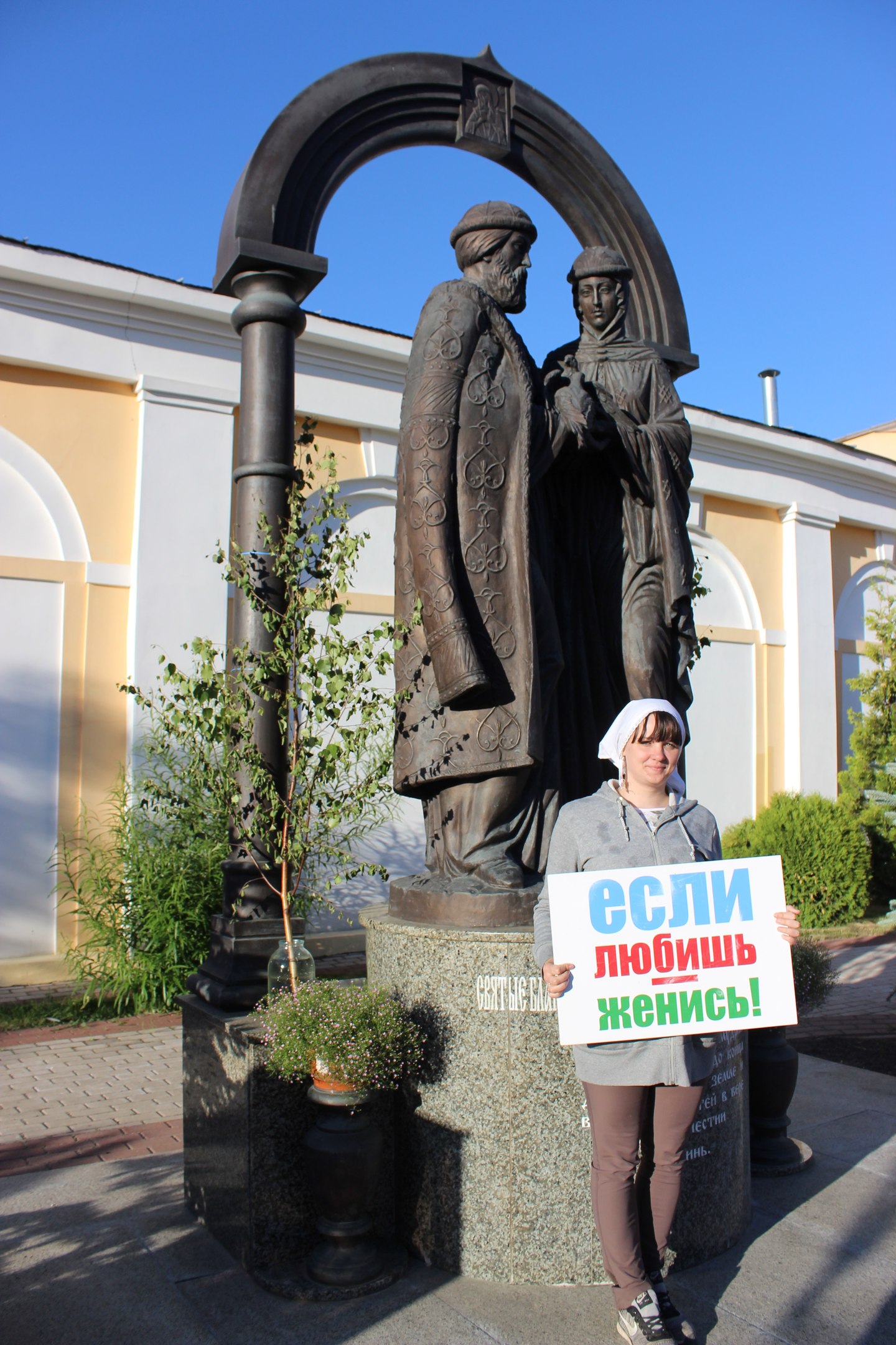 «Если любишь – женись!»: калужанки встали с плакатами у храма