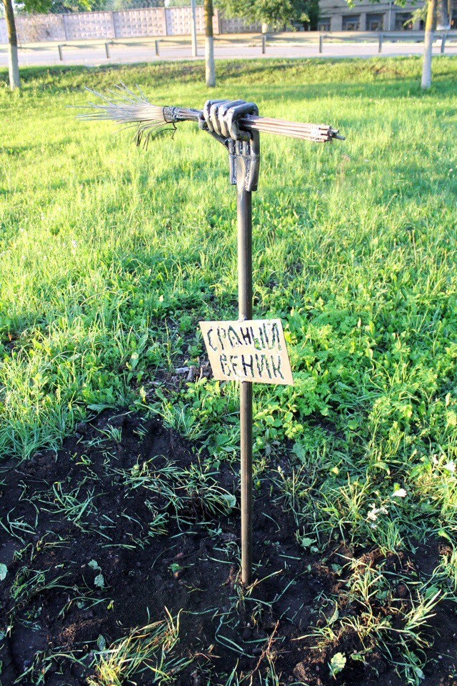 Памятник венику появился на набережной в Людиново. Необычный арт-объект имеет подпись: «Сраный веник». Автор сего произведения неизвестен.