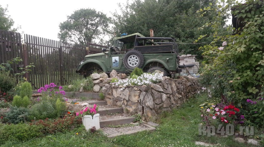 Подпорная стена, возведённая собственноручно, стала стоянкой для ГАЗ-69.