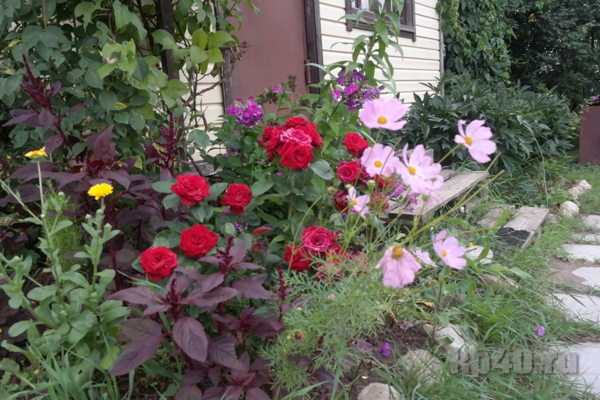 К дому примыкает небольшой, но роскошный миксбордер (смешанный цветник). Он спланирован так, что в нём всегда что-то цветёт. Тюльпаны, пионы, флоксы, лилейники… Всего и не перечислить! Картину довершают плетистые розы, придающие всей композиции изысканность. Есть в саду и отдельный розарий. Розы — любимые цветы Маргариты. В углу усадьбы Дмитрий обустроил «малявник», где жена выдерживает новые сорта перед посадкой. Королева цветов роза в условиях чрезвычайно глинистой почвы требует постоянной заботы: укрытия на зиму, правильных подкормок в нужное время, грамотной борьбы с вредителями и болезнями. Но красота цветущих роз в июле заставляет забыть все эти сложности!