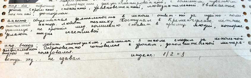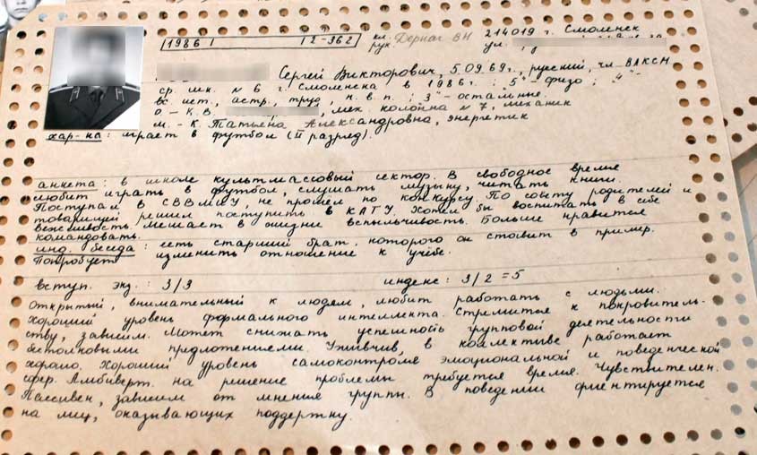 В этих папках фотографии, имена и фамилии, адреса проживания, семейное положение, данные о родителях и психологические характеристики курсантов, родившихся в 60-х, 70-х годах прошлого века.