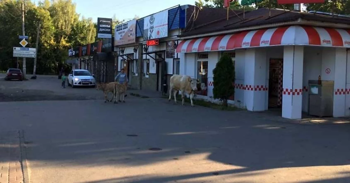Как мы уже писали, свободно гуляющих телят стали замечать у торгового центра «Торговый квартал». А в пятницу, 24 августа, они были замечены на свободном выпасе с противоположной стороны микрорайона - в районе пиццерии, что расположена напротив площади Кубяка.