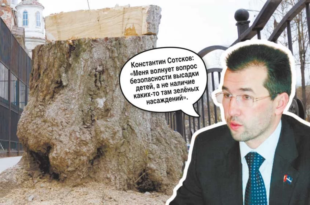 Накануне Дня города депутату Думы Калуги Константину Сотскову, который, судя по всему, имеет самое непосредственное отношение к уничтожению деревьев, присвоили звание «Заслуженный работник города Калуги».