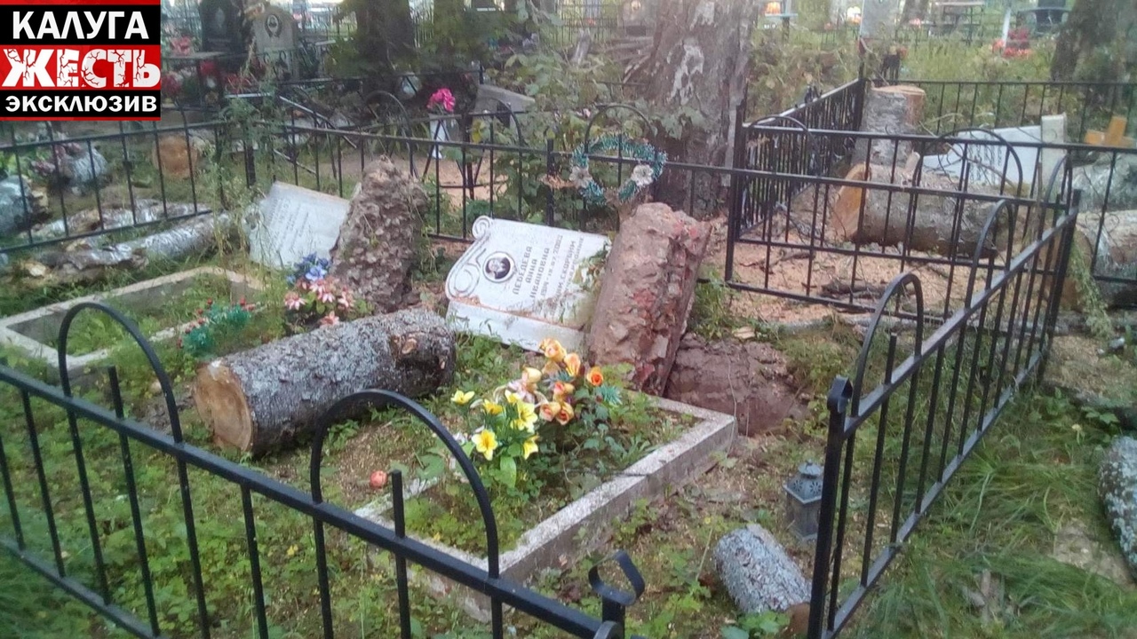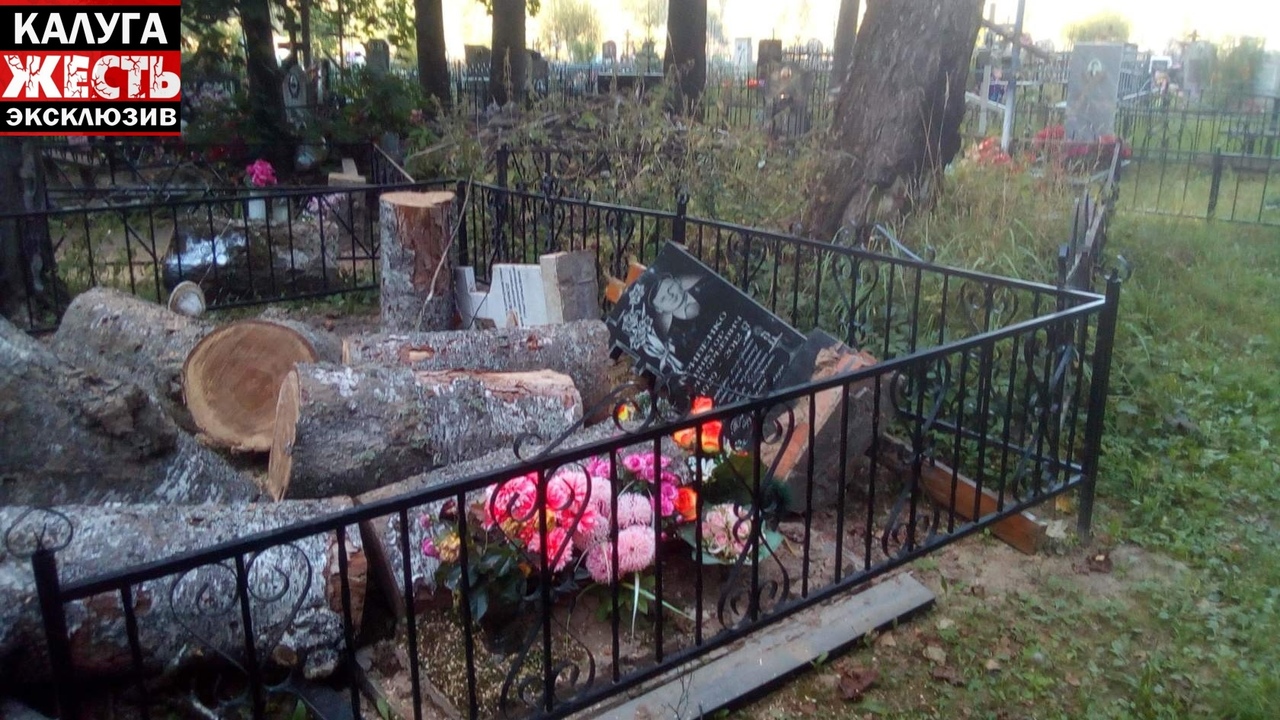 В четверг, 30 августа, в группе «Калуга Жесть» были опубликованы фотографии центрального кладбища Жиздры. На них видно, что после опиловки деревьев, были раскурочены могилы и повреждены надгробия.