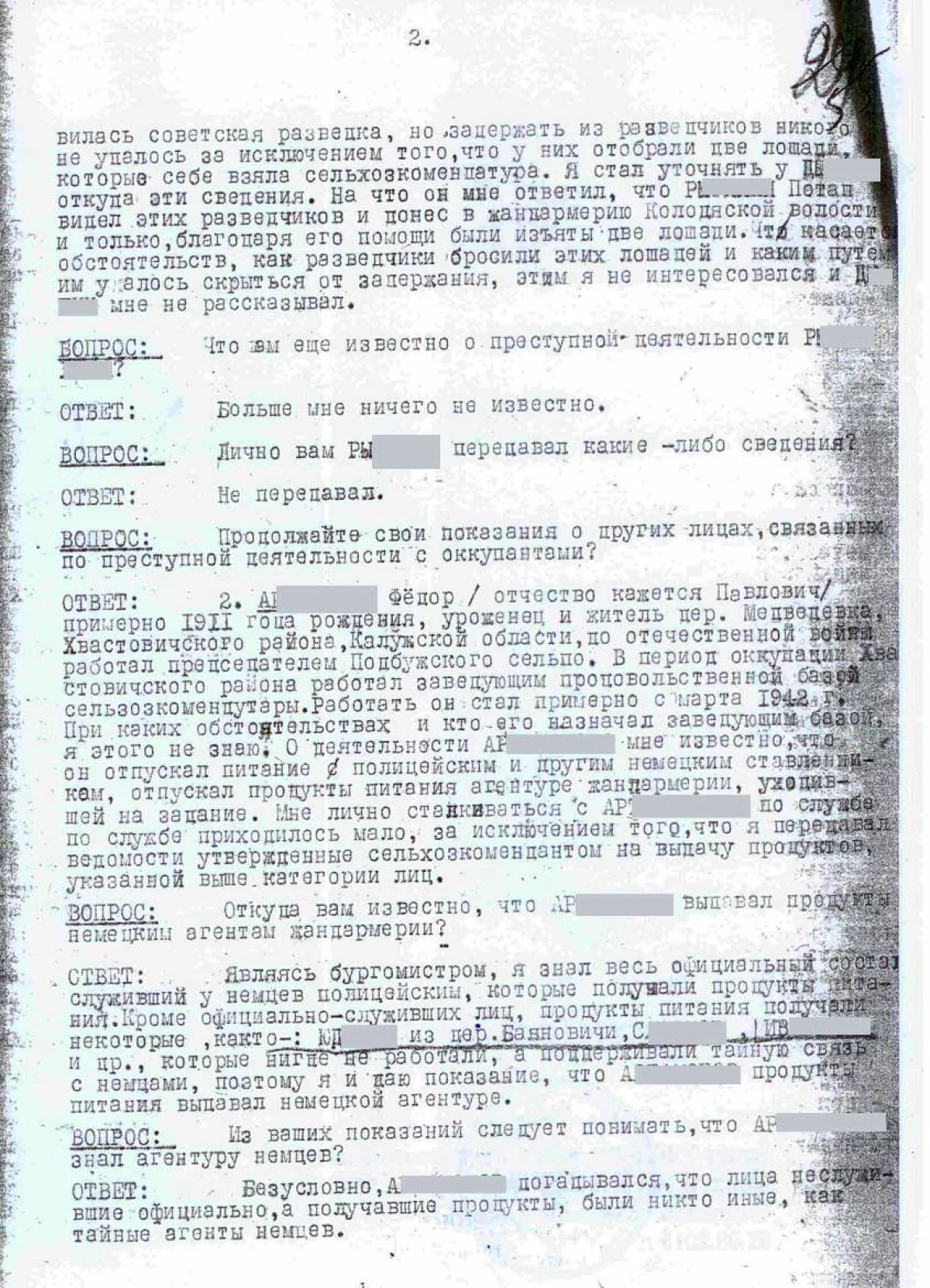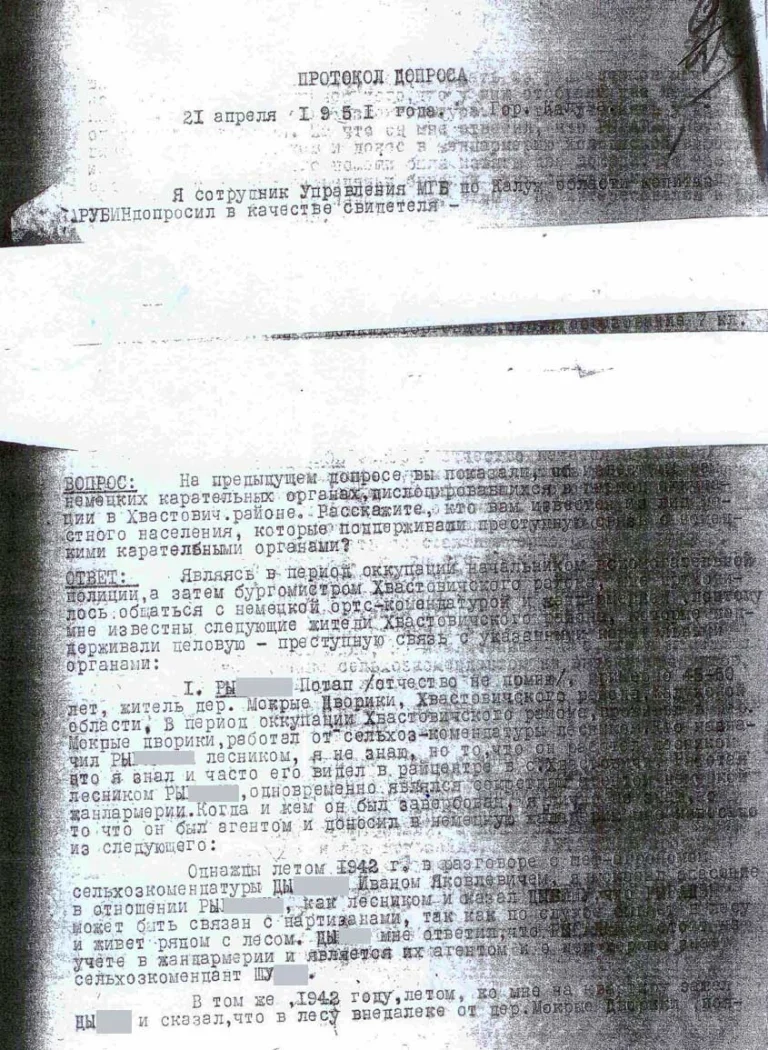 Интересную историю на допросе рассказал бургомистр Хвастовичского района, до того возглавлявший районных полицаев. Его допрашивали на предмет того, кто работал на немцев тайными агентами. Бургомистр охотно сдал чекистам всех, кого знал.