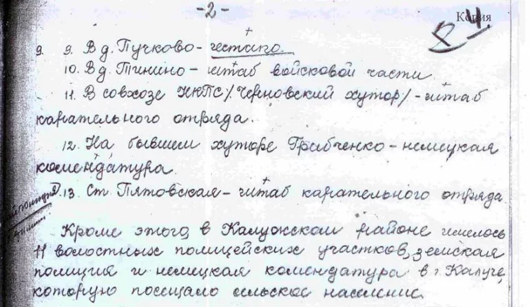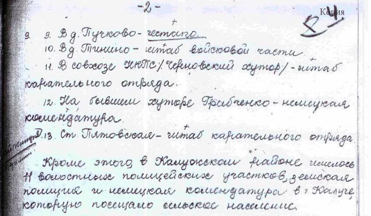 «Кроме этого в Калужском районе имелось 11 волостных полицейских участков, земская полиция и немецкая комендатура в Калуге, которую посещало сельское население», - говорится в документе.