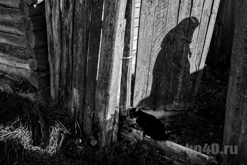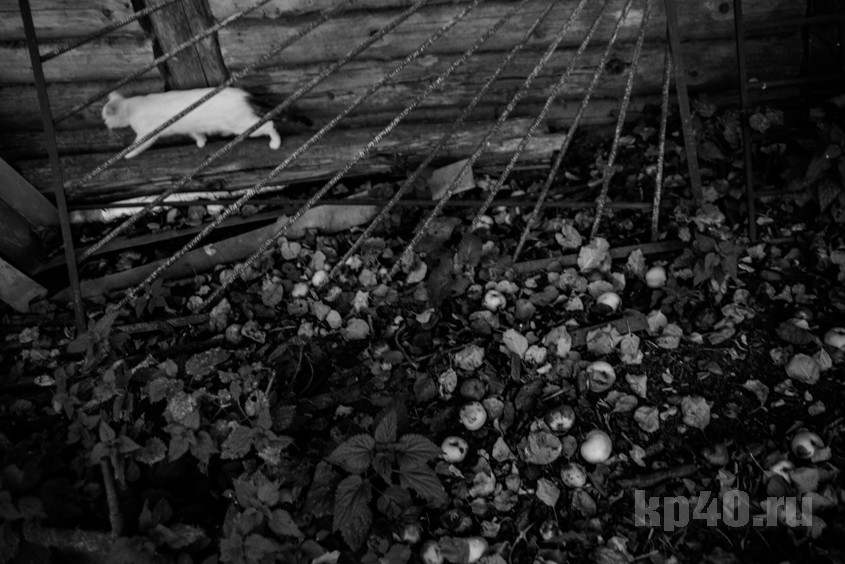 Баба Нюра с котом на крыльце своего дома в деревне Авдеевка. Баба Нюра – единственный постоянный житель этой небольшой деревни. Она живет одна с семью кошками и собакой. Уезжать она не хочет, хотя дети постоянно уговаривают её переехать в город. На все уговоры она лишь отмахивается: «Ну куда я поеду? Всю жизнь прожила здесь - здесь и останусь!».