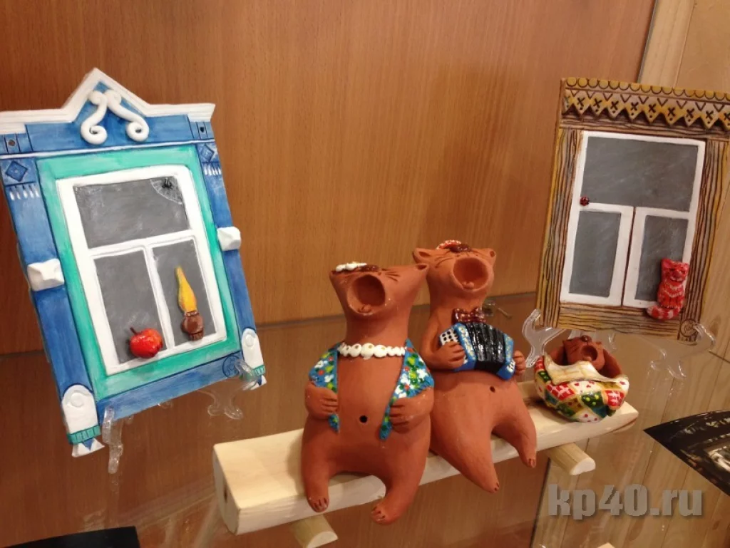 — Всю жизнь я с кисточкой в руках. В 7-м классе увлеклась рисованием. В 7 утра уже сидела с красками… А к глине шла долго. Когда училась в Тарусском лицее, была пара уроков, но меня они не зацепили. Потом жила во Владимирской области, работала художником по росписи на фабрике Ковровской глиняной игрушки. Там мне предлагали лепить, но я не была к этому готова. А потом освоила тестопластику. Мне нравилось, и изделия получались замечательные, но при определённых погодных условиях они разваливались. Тогда мне подсказали, что лучше делать из глины. Так я и пришла к керамике. Видимо, всему своё время. Училась сама, никакие мастер-классы не посещала. Просто мне нравится доходить до всего самой. Игрушки из глины начала делать только 2 года назад. И теперь я глинозависимая, неизлечимо больна ею. Поэтому и выставку в Доме мастеров назвала «Влюблена по собственному желанию». Если с утра нет глины, у меня прямо трясучка начинается. Работаешь с ней, как с живым материалом, она много сама подсказывает. Однажды в 3 часа ночи я сидела и лепила котов, и они в тишине нашептали мне эту выставку и идеи для следующей. В голове множество всяких проектов. Сейчас думаю уже о второй выставке — «Приключения калужского кота Семёна». Возможно, там будут сюжеты из глины с небольшими рассказами.