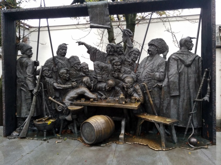 Композиция по известной картине, посвященной казакам, которые пишут известному султану известный посыл известно куда.