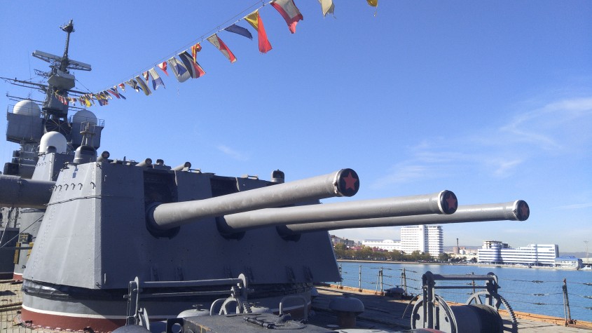 Крейсер Михаил Кутузов, пришвартованный у набережной Новороссийска, превратился в музей.