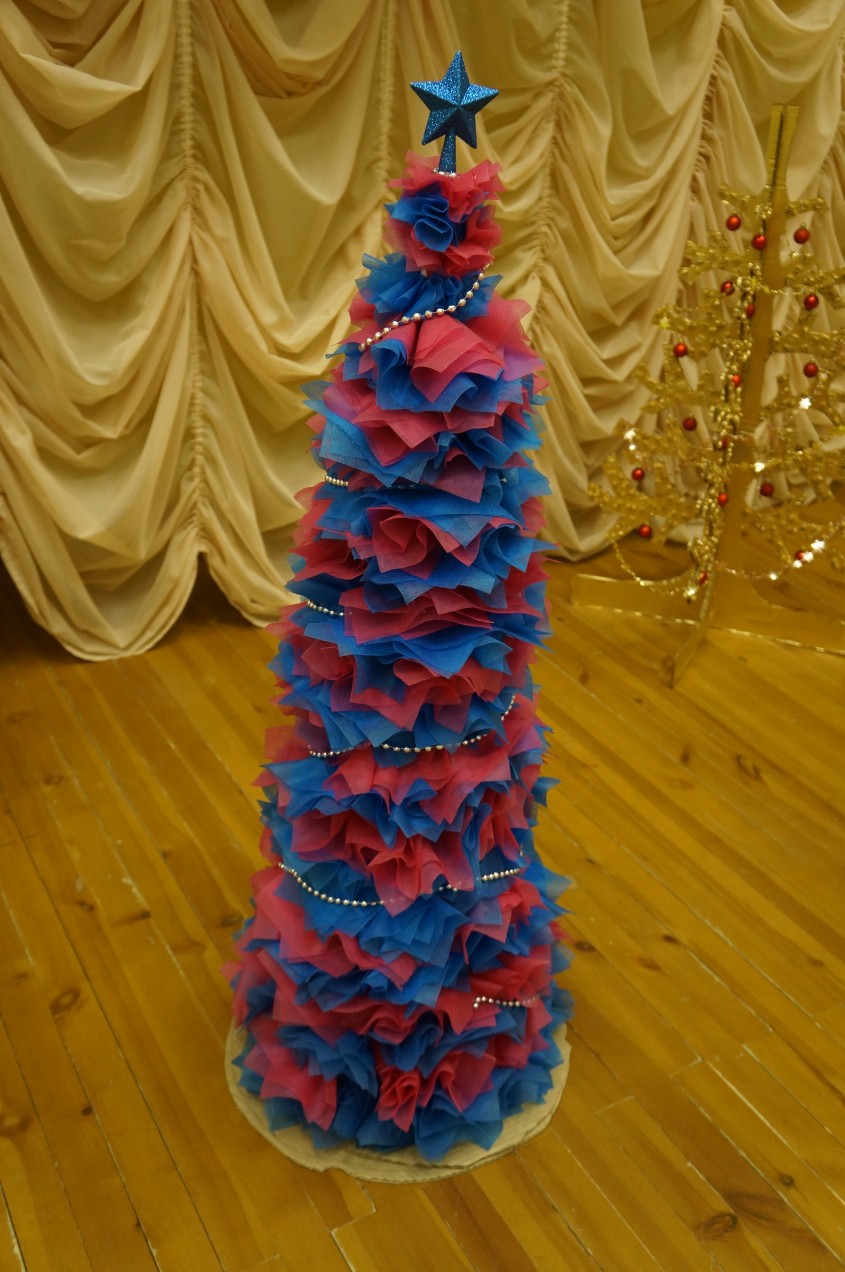 Ёлки поставили в холле на входе, в кабинетах и в коридорах. Часть работ отправили на конкурс. Сейчас подводятся его итоги.