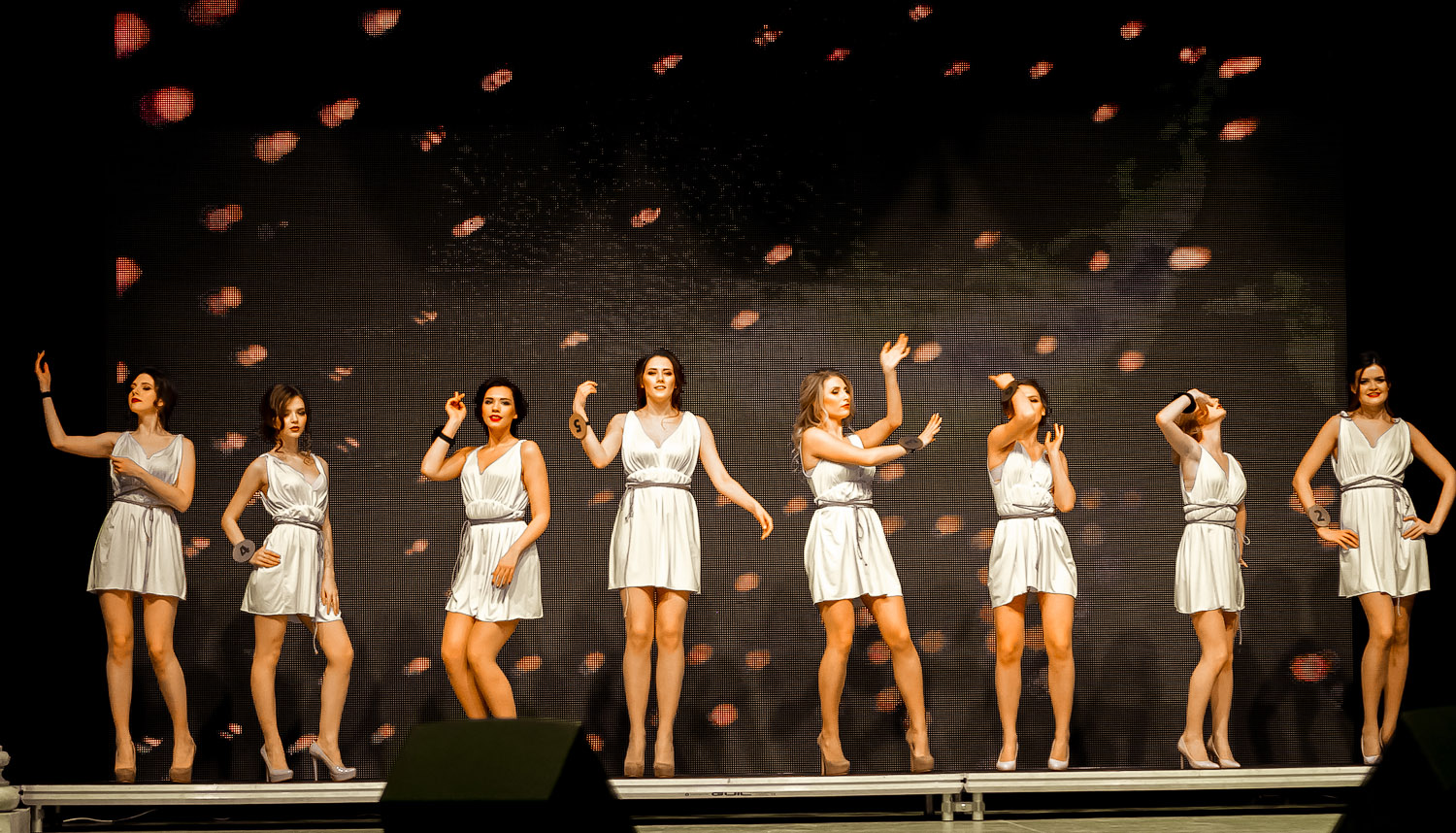 Следующий выход конкурсанток оказался в античном стиле. На сцене они появились в маленьких белых платьях, похожих на туники, а их движения отсылали к танцу сиртаки.