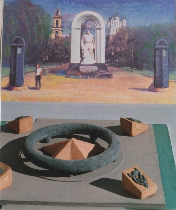 - В конце 1990-х годов, городская управа Калуги решила возобновить работу над созданием памятника погибшим в Афганистане, - вспоминал народный художник РФ, скульптор Валентин Михайлович Белов, который в соавторстве со своим сыном, тоже скульптором, Дмитрием Беловым, работали над монументом. - Но время тогда было тяжелое, средств не хватало, поэтому решили обойтись без конкурса и обратились непосредственно ко мне и моему сыну с предложение создания монумента, не затягивая время и «не рассчитывая на дорогой материал».