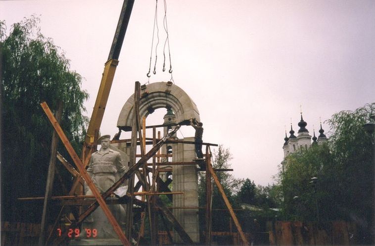 Много было перепробованного и передуманного, прежде чем было найдено окончательное решение для завершения памятника. К сожалению, материал исполнения, ввиду нехватки денежных средств, был недостаточно долговечен: фигура воина и декоративная арка выполнены из белого искусственного камня, а цокольная часть из темного декоративного цемента, - вспоминал Белов-старший.