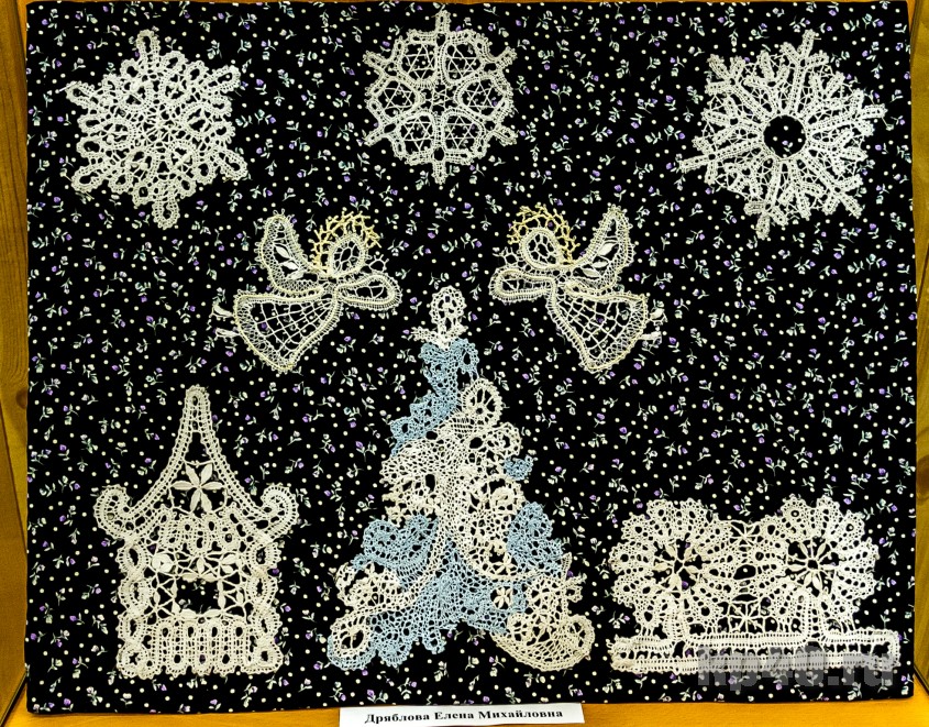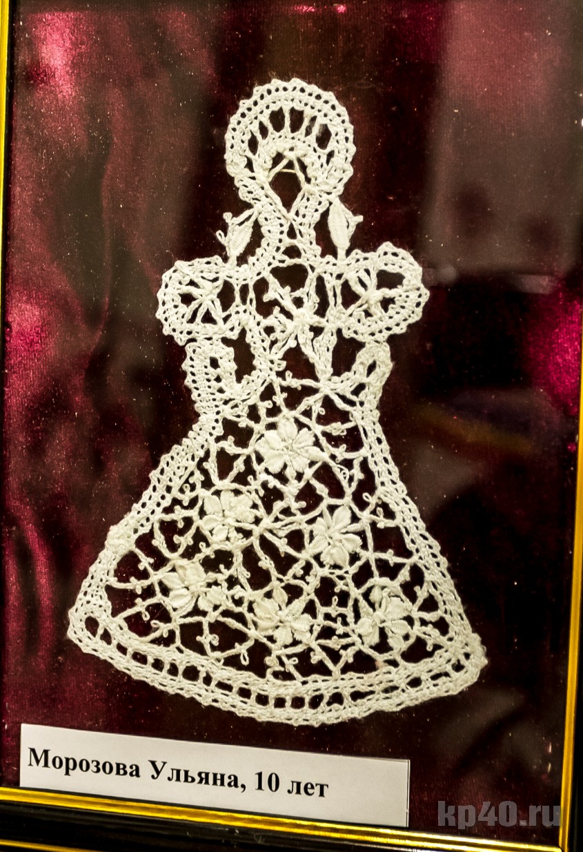 — Дома было скучно сидеть, и я пришла к Елене Михайловне. Она предложила заниматься лепкой из солёного теста. Мы лепили. А потом я увидела, как она плетёт на коклюшках. Захотела попробовать. Получилось. Занимаюсь второй год. Сделала ангелочка, бабочку, воротник, серёжки маме ко дню рождения. Вот плету салфеточку. Можно сплести маечки, футболки, панамки, шапочки. В Вологде даже свадебные платья плетут, но они очень дорогие — по 500 тысяч рублей. А там их покупают.