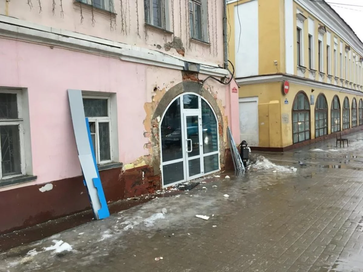 В центре Калуги сняли вывеску, уродовавшую старинный дом