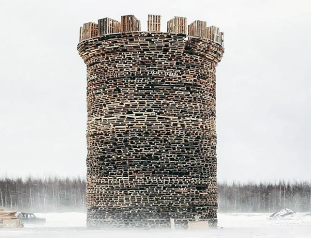Как мы уже рассказывали, в субботу, 9 марта, в Никола-Ленивце Масленицу отметят сожжением деревянной Бастилии. 20-метровый арт-объект от Николая Полисского возводили 50 дней при участии 15 человек.