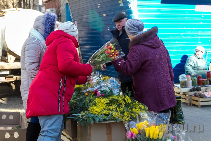 Когда я шла по улице Кирова обратно, она вся была заставлена столами с мимозами и тюльпанами. Цветами торговали на каждом углу.