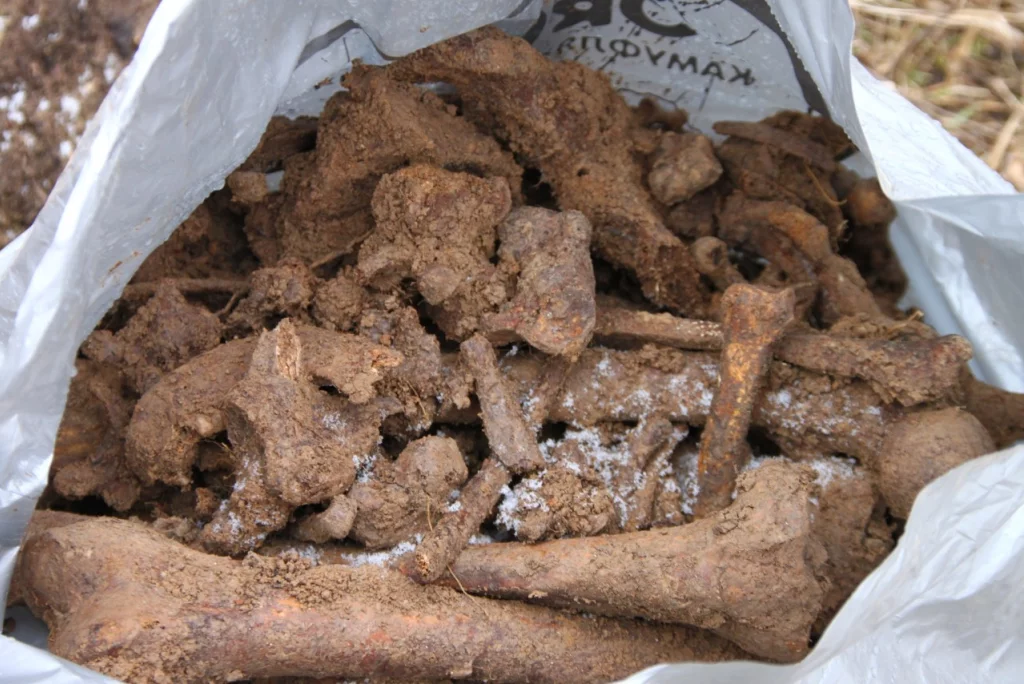 Поисковики из отряда «Беспокойные сердца» буквально в десяти метрах от Варшавского шоссе обнаружили останки двух бойцов Красной Армии. Установить личности красноармейцев пока не удалось.