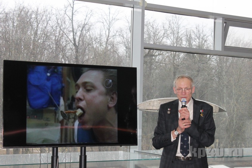 — В первом и во втором полётах я провёл в космосе полгода, в третьем — год и две недели. На станции мы пользуемся обычными земными предметами: зубная паста, зубная щётка, тюбик с витаминами. Но привыкнуть к тому, что всё вокруг тебя летает — вроде мух, невозможно. Поэтому предметы прикрепляем к поверхности на липучках. Едим ложками, не похожими на земные: у них длинная ручка, а чашечка совсем маленькая. Еда не только в тюбиках, есть консервы, например, с плавленым сыром, и, если их немного разогреть, они становятся очень вкусными. Чай пьём из космического непроливаемого «стакана» — в нём специальный клапан, с помощью которого жидкость высасываем. Вода на станции превращается в коктейль с огромными пузырями. Поэтому её надо отделить от воздуха. Способов несколько, например, можно раскрутить наше «ведро», и вода прилипнет к стенкам.