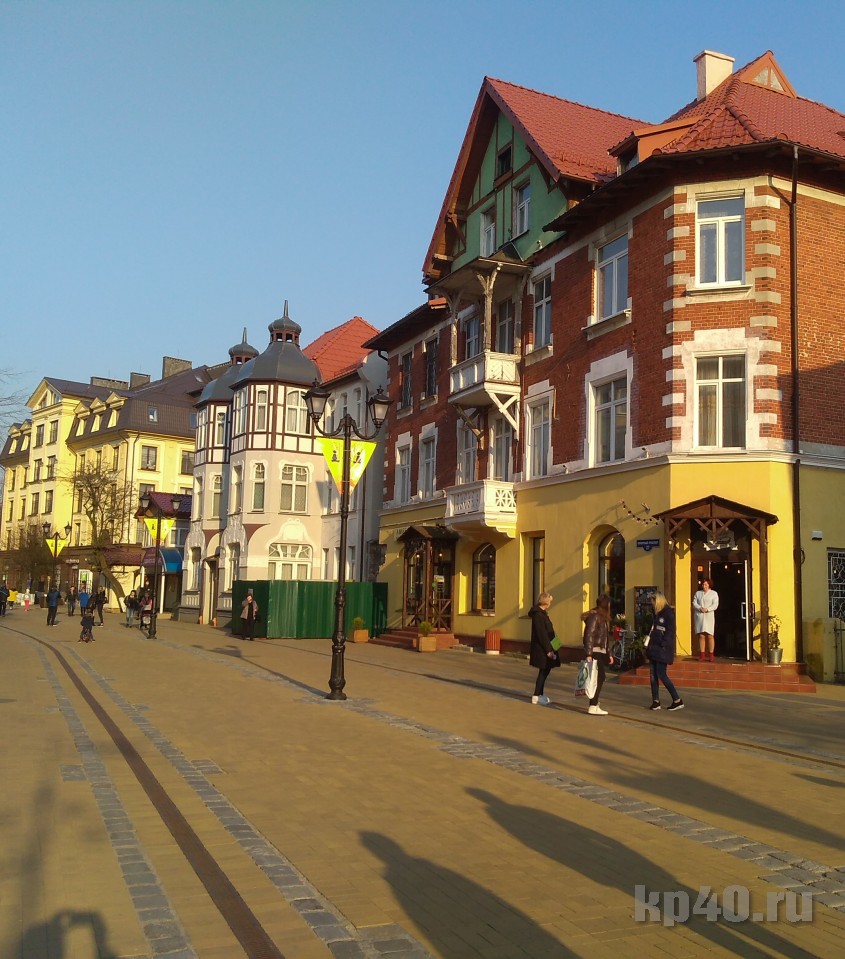 40 минут от дома на Правобережье до Грабцево — на автобусе № 4, час — на регистрацию и досмотр, чуть меньше двух часов полёта и 30 минут на автобусе — от аэропорта Храброво до центра Калининграда. И мы уже в самой западной области России, отделённой от неё Литвой и Белоруссией. Вылетали из пасмурной Калуги с температурой воздуха +3 градуса. Прилетели в Калининград, а там — настоящая весна! Уже зацветают каштаны, сирень, жёлтые форзиции и даже магнолии. Днём воздух прогревается до +16, а вечером холодает до +10. Никаких дождей и пронизывающего балтийского ветра: самое то — гулять по городу и ездить по экскурсиям.