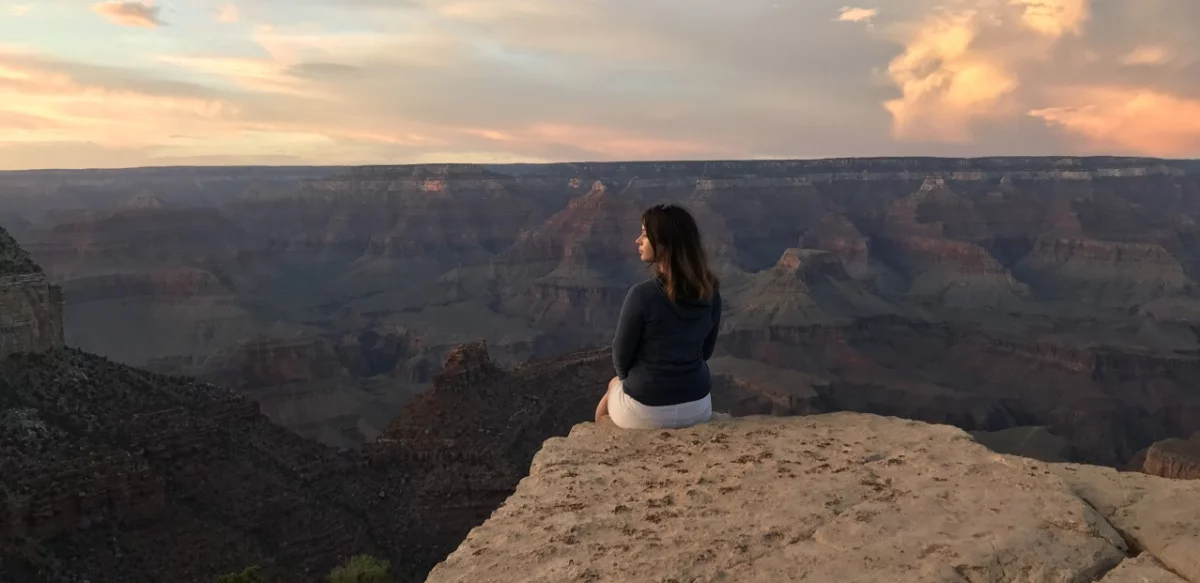 — Наше путешествие по Западу началось с Вегаса. Этот город находится посреди пустыни, и там безумно жарко. По приезде нам сказали, что с погодой повезло, потому что вчера был дождь и теперь будет прохладно — всего 38 градусов. А потом и вовсе дошло до 42. Но, несмотря на эту дикую жару, мы всё равно с удовольствием погуляли по городу. Все  основные развлечения сконцентрированы на так называемом Стрипе, официально  — Las Begas Boulvard. Там собраны копии мировых достопримечательностей: египетских пирамид, Эйфелевой башни, Тадж-­Махала. Жемчужина Лас-­Вегаса — знаменитый отель «Белладжио» со  своим шоу фонтанов, которое я посмотрела 5  раз, и каждый раз они танцевали под разную музыку. Ну и, конечно, Вегас надо увидеть после заката, когда включается вся разнообразная иллюминация.