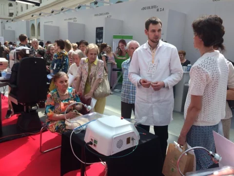 Вели прием пациентов и специалисты калужской «Клиники Боли» - нейрохирург А.В. Городнов и сосудистый хирург Е.Г. Федоров. Москвичи с болью в спине и суставах шли на прием к нейрохирургу, приносили свои снимки и результаты МРТ, получали рекомендации. Сосудистый хирург проводил УЗИ-диагностику заболеваний вен и рассказывал пациентам о современных методах лечения варикоза. В «Клинике Боли» используют последние достижения в этой области - комплексную малотравматичную методику (склеротерапия, минифлебэктомия и лазер), которая позволяет привести в порядок всю венозную систему ноги.