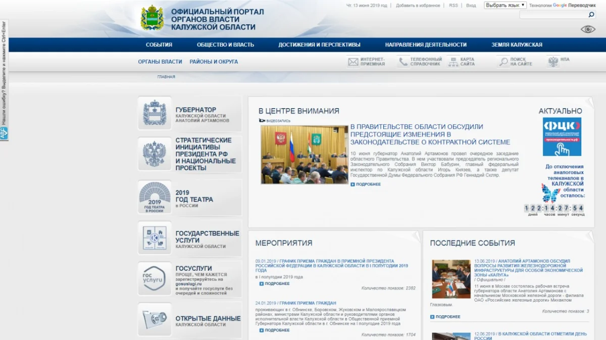 Официальный портал органов власти Калужской области попал в лидеры рейтинга открытости и информативности, который составляют эксперты системы аудитов интернет-ресурсов «Инфометр».