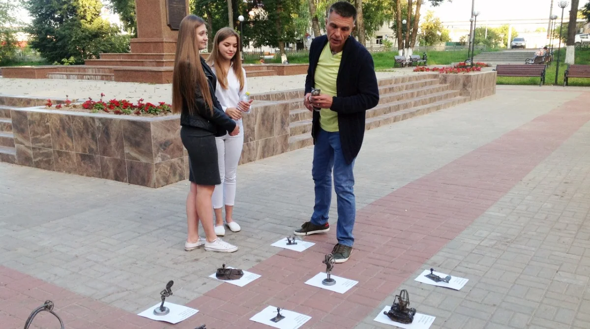 В субботу, 13 июля, в Людиновском парке прошла необычная выставка-опрос «Шо вам, блин, ваще надо». Организатор акции - небезызвестное ЛТП – Людиновское творческое подполье. Скульптор по металлу Максим АДЕЙКИН и художник Андрей ФАНДЕЕВ задавали женщинам вопрос, над которым веками ломают головы мужчины: «Шо вам, блин, ваще надо?» Опрос проходил на фоне выставки работ Адейкина.