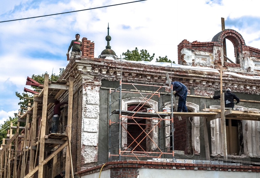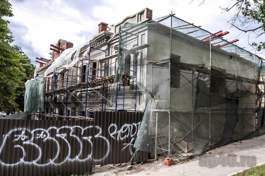 В Калуге продолжается реконструкция Дома Билибиных. Рабочие уже восстановили незаконно снесённую собственником стену. Сейчас фасад обретает утраченный вид. Несмотря на то, что у здания ещё нет кровли, помещения уже предлагают взять в аренду.