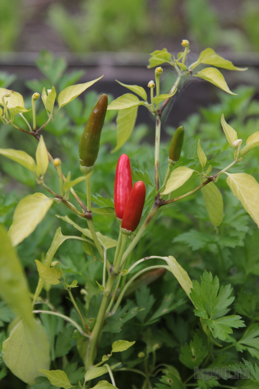 Горький перец посажен отдельно от сладкого, чтобы не было переопыления.