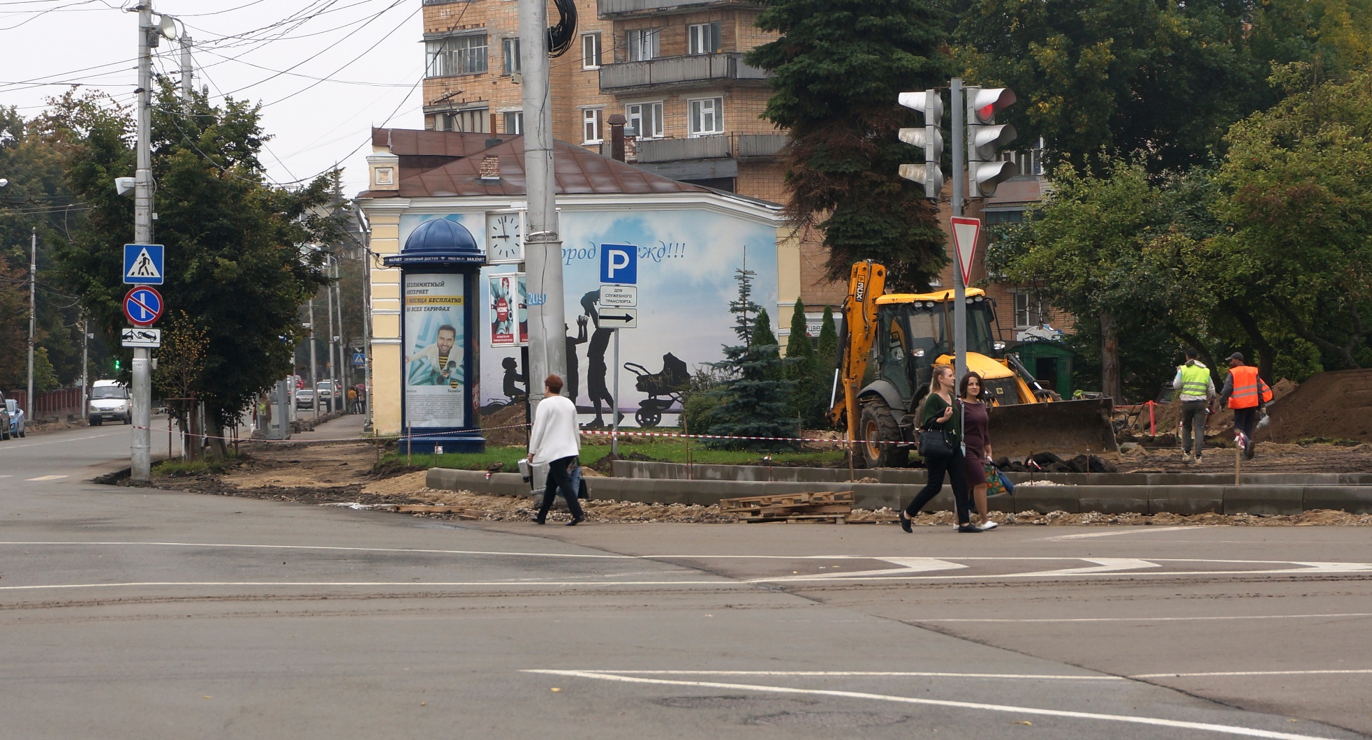 Теперь же вся пешеходная часть у горуправы перерыта.