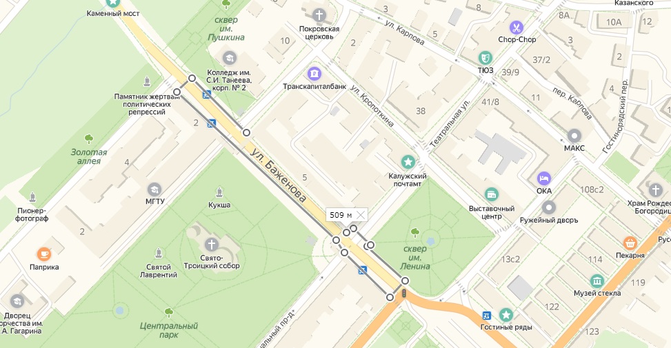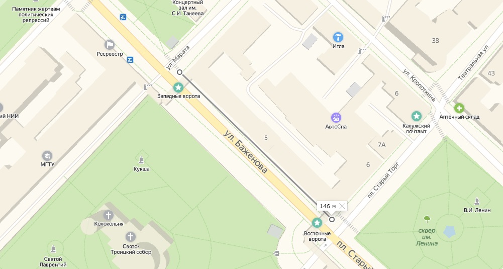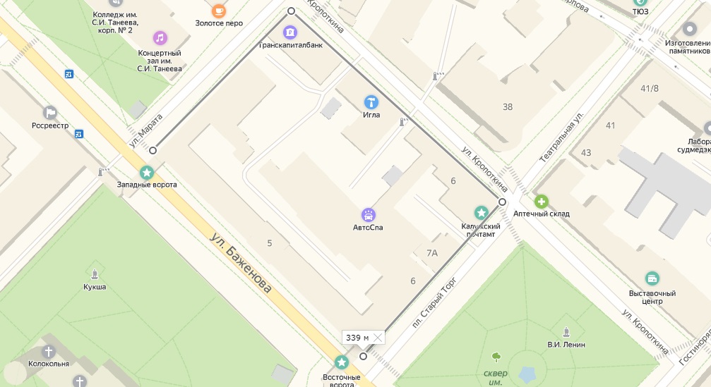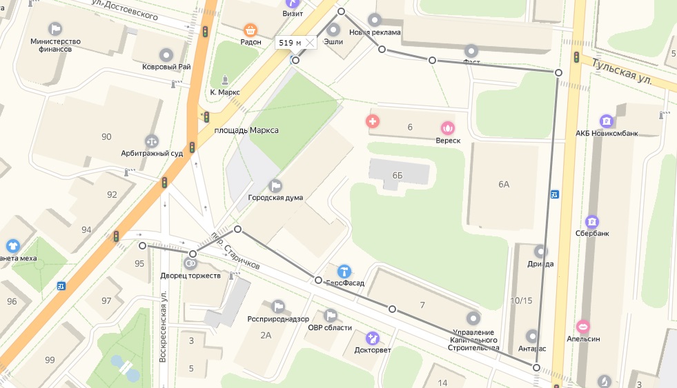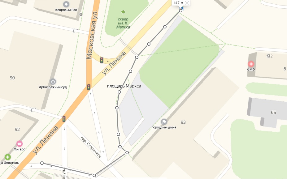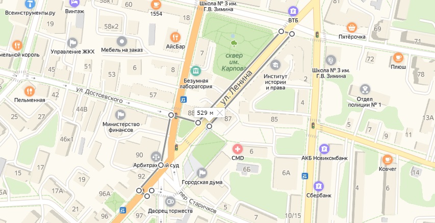 Допустим, вы идете вверх по улице Ленина, доходите до пересечения со Старичковым переулком, а дальше вам нужно прямо по Ленина. Возьмем за конечную точку остановку общественного транспорта под названием «Городская управа».