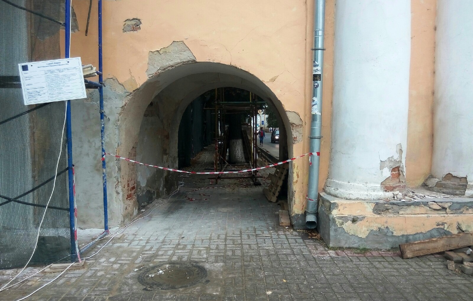 Похожая картина на улице Баженова. Там в этом году наконец-то начали ремонт одного из корпусов Присутственных мест по адресу Старый Торг, 5.