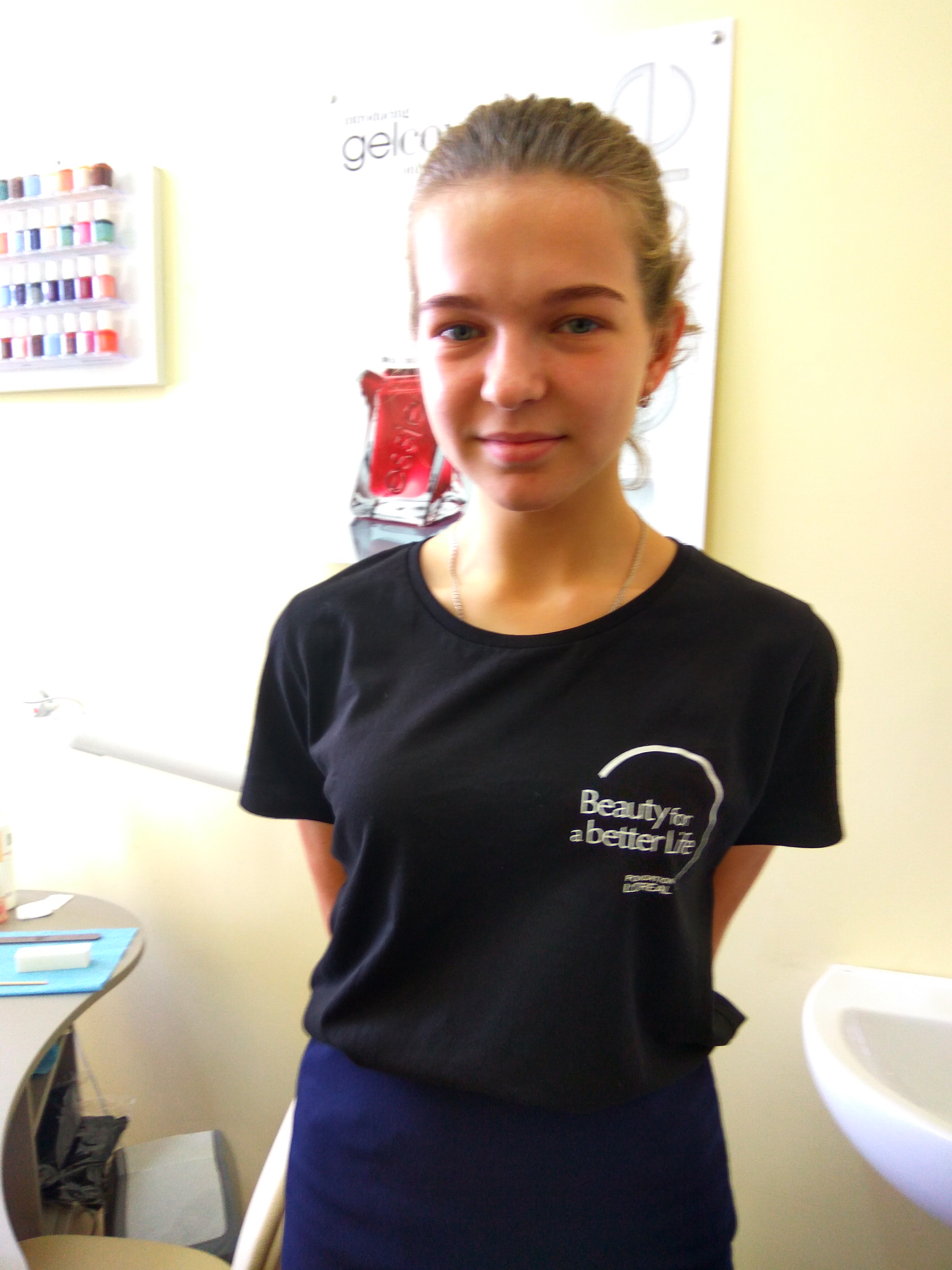 — Здесь все так аккуратно и чисто, очень современно! Я в прошлом году ходила на маникюр и парикмахерское искусство. И там, и там на экзамене у меня хорошие оценки. После курсов я легко делаю прически родителям и крашу ногти. А теперь хочу еще и на визажиста выучиться. В дальнейшем я, возможно, буду и сама развиваться в этих направлениях.