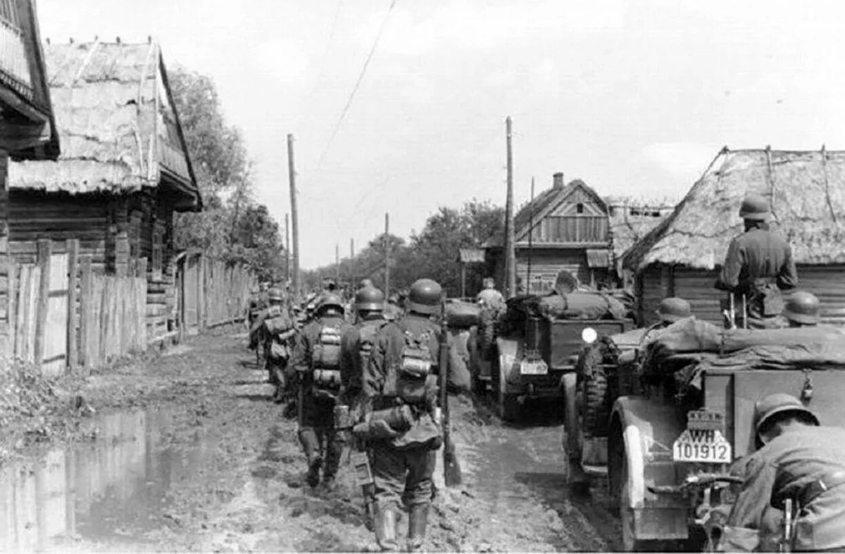 Помню, как по деревне шёл карательный отряд из финнов, — всё мужское население поголовно уничтожалось. Мать, зная об этом, переодела меня в девичье платье. Фашисты поджигали дома. Наш деревянный дом на выселках сгорел, и мы с ней шли смотреть, осталось ли что-то из еды. Всю живность перед приходом немцев зарезали, спрятали мясо в чугунках под полом. Вдруг навстречу нам немец. Смотрит на меня, переодетого, внимательно и спрашивает: «Партизан?» Мать: «Нет, нет, пан, что вы!» Не знаю почему, но он нас отпустил. Хотя, возможно, догадался, что я переодетый мальчик.