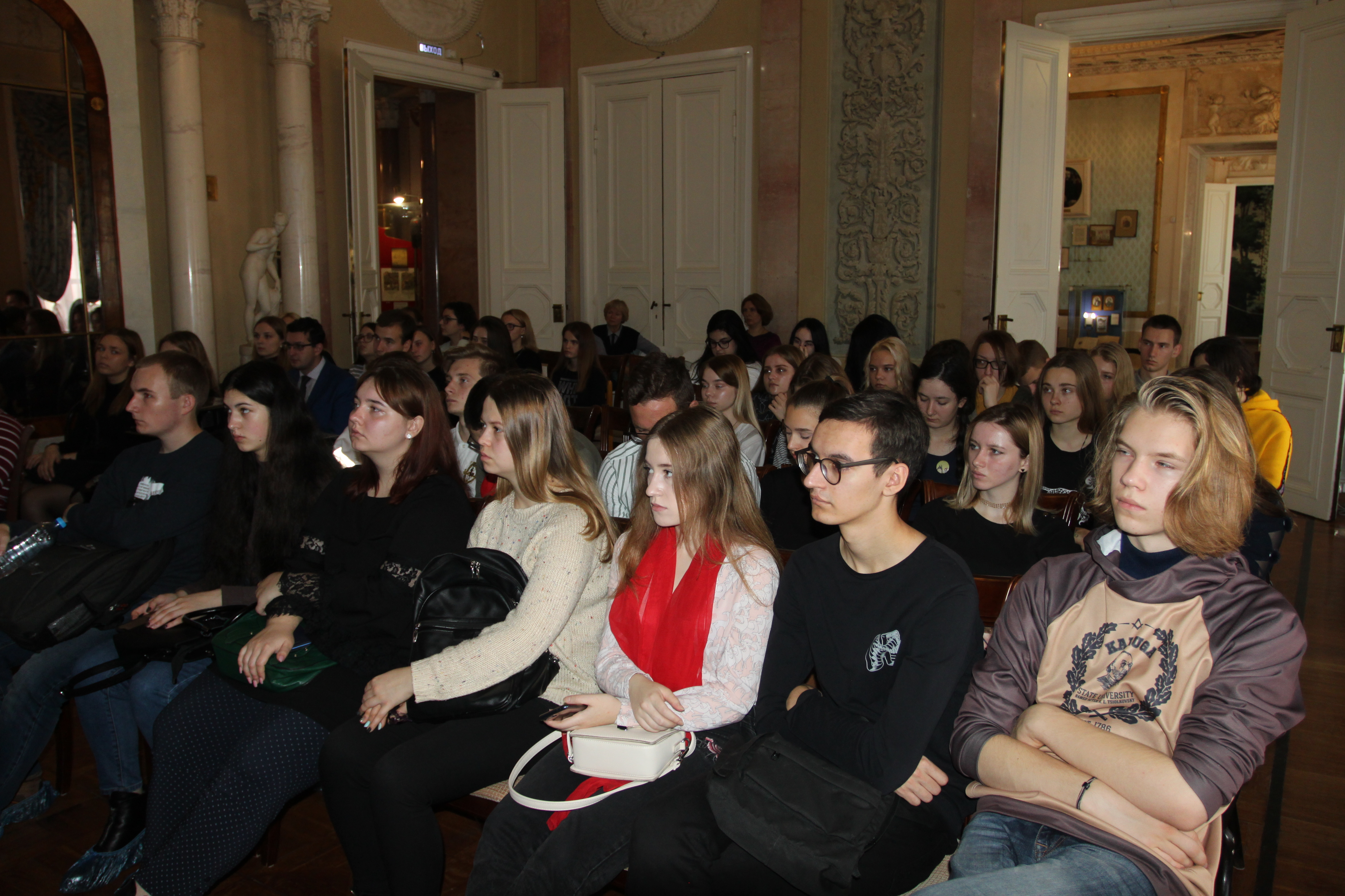 Студентов пригласили в танцевальный зал музейно-краеведческого комплекса «Усадьба Золотарёвых», где всё сохранилось, как в начале ХIХ века.