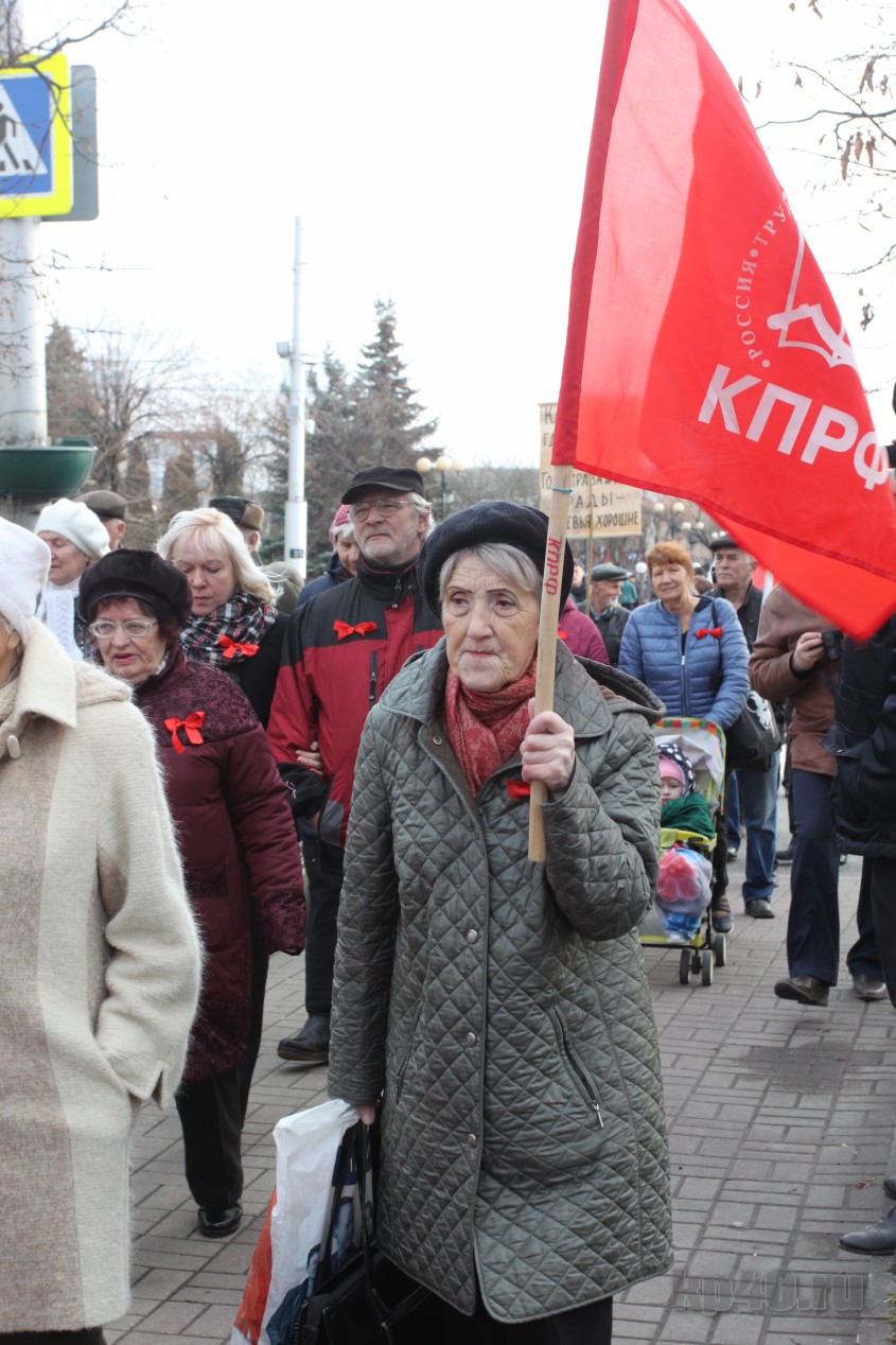 Ещё в 9 утра коммунисты с плакатами, гвоздиками и шарфами с символикой своей партии стали собираться на площади Победы.
